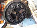 Quando io ho smontato il mio ho avuto da una parte il carter centrale con parte degli ingranaggi e dall'altra il carter posteriore con l'altra parte di ingranaggi (vedi foto in alto in questa stessa pagina e foto del solo lato coperchio sotto). Quando l'ho rimontato ho messo semplicemente il carter posteriore con i suoi ingranaggi nei due bulloni guida (ovvero, tutto il gruppo della foto sotto bell'è montato), ho poi accostato quest'ultimo al blocco centrale con la leva della forza su veloce e quando l'ingranaggio moltiplicatore (su cui si inserisce la chiavetta della leva di forza) ha toccato l'asse portante (con una distanza tra il carter e il coperchio di 5-7 cm) ho avanzato la leva di forza su velocità bassa (quindi in avanti) guidando contemporaneamente il gruppo moltiplicatore fino al suo inserimento sulla punta dell'asse portante, quindi ho chiuso il tutto, senza alcuna complicazione. Tutto qua. Non ho avuto bisogno di fare altro (togliere sfere, molle o viti, o quant'altro).
