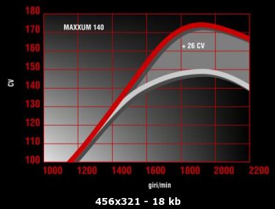 Ecco il grafico della potenza sviluppata dal Maxxum 140 con e senza power managment inserito: