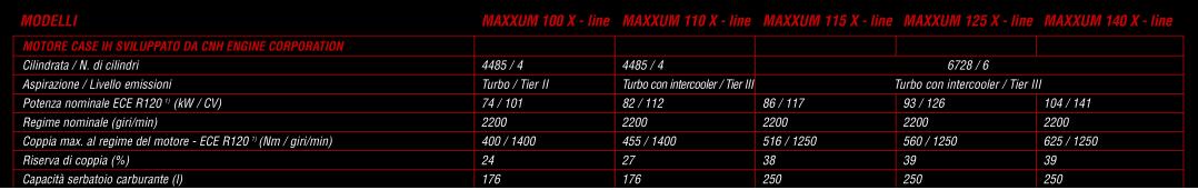 I motori utilizzati sulle versioni X-Line sono tutti turbo intercooler NEF 4 cilindri 4500 cc e 6 cilindri 6700 cc Tier 3 (tranne il 100 X-line che non ha l’intercooler ed è l’unico ancora Tier 2), a 2 valvole per cilindro e iniezione meccanica.