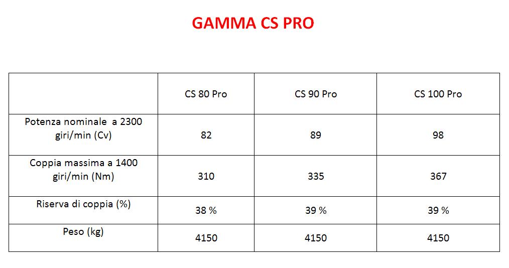 La gamma CS Pro è costituita da 3 modelli con potenze che vanno da 80 a 100 cv.