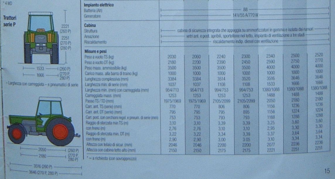 necessiterei di avere + informazioni possibile sul FENDT 280 P. In internet non risco a trovarne una scheda tecnica.