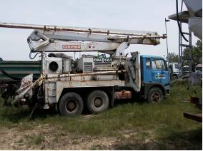questa è veramente un pezzo da museo....betoniera con trasmissione a catena e braccio da (forse) 14m.