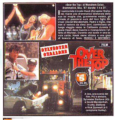 1)Un locandina di "Over the top",con gli attori protagonisti ed una scena del White-Autocar usato da Sylvester Stallone nel film