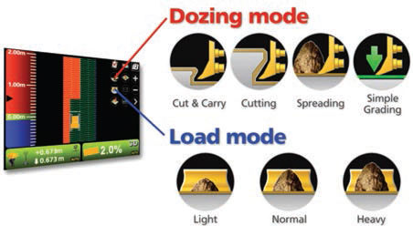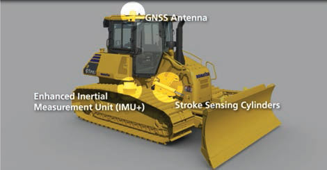 - Unità di misura del materiale inerte (IMU+), che permette di livellare il terreno senza i sensori montati nella lama