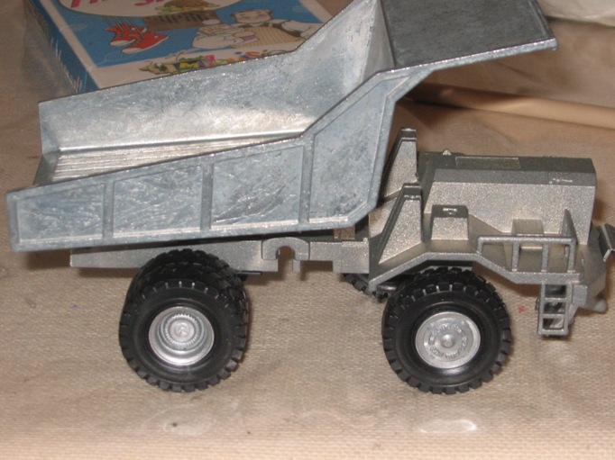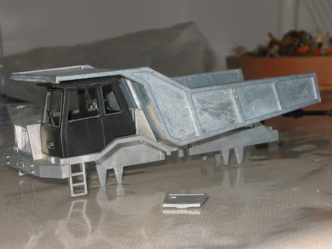 Dalle foto che ha inserito Mitti (che avevo salvato anche io..) posso comunque dirti che il modellino non è molto conforme al modello reale soprattutto nel cassone... le nervature di rinforzo non hanno mai avuto quella linea, comunque penso che non sia opportuno rifare il cassone.... Io ti consiglierei dopo la verniciatura, solo di sostituire il tipo di pneumatici che non sporgono affatto nei dumper veri, e di riprodurre delle decals con i loghi originali. La parte anteriore, cabina , cofano motore e accessi vari possono anche essere lasciati così...magari puoi provare a modificare le ringhiere a destra del cofano...
