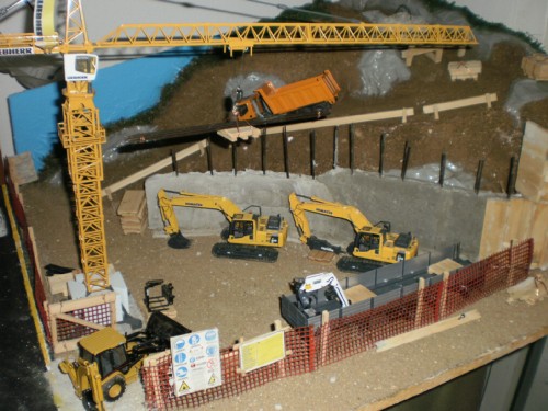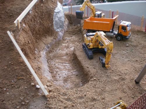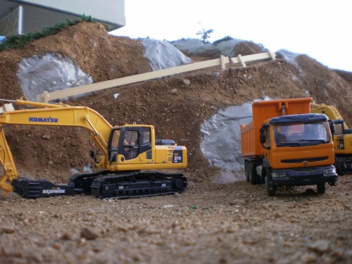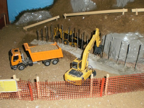 Salve a tutti, mi chiamo Stefano e sono nuovo del forum, o meglio vi seguo con interesse da un pò, perchè come voi condivido la passione per il modellismo e piu in generale per il mondo delle costruzioni edili e delle Mmt. Solo ora però mi sono deciso di scrivere, e in contemporanea con la realizzazione del mio diorama. Si tratta di una base preparata con legno, schiuma espansa e carta pesta, che riproduce una zona da edificare in periferia, in corrispondenza di una statale. Per ora siamo alle fondamenta. E' il mio primo Diorama, quindi scusate se il realismo o la tecnica non sono delle migliori