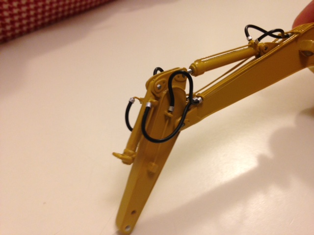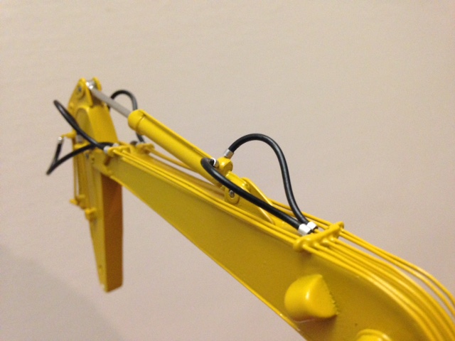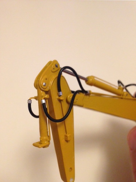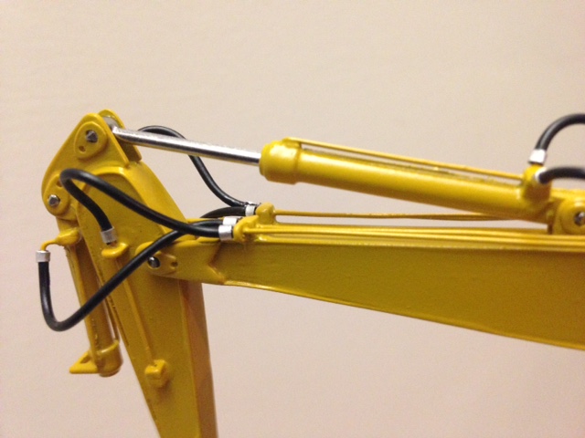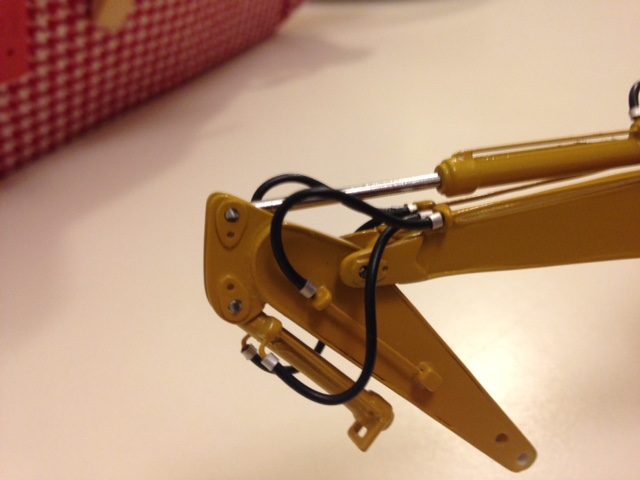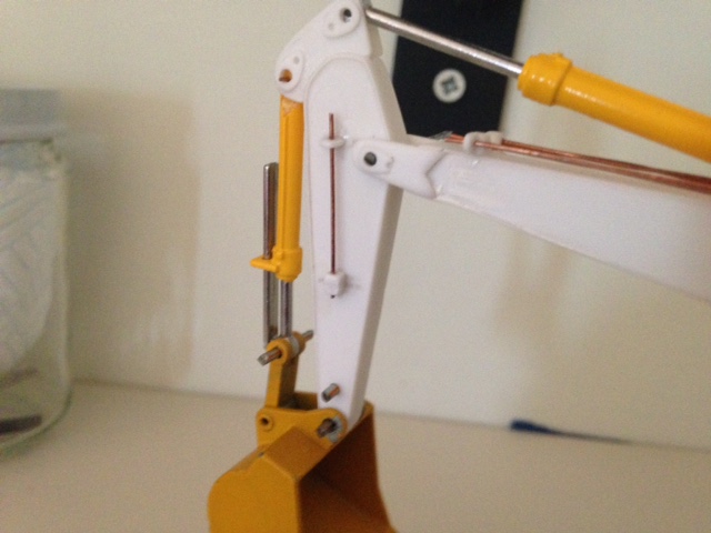 Ed ecco il braccio chiuso! Purtroppo la foto del braccio steso non corrisponde a questo modello ,infatti si vede benissimo che monta la parte finale corta e mancano anche i tubi rigidi dell'impianto idraulico! Ma come dicevo non trovò quasi niente su questo modello specifico! Mi ripeto se mi invii anche un disegno di come riposizionarsi provo subito a modificarlo! I tubi per ora non sono incollati il modellino è ancora smontato! Se mi mandi la tua ide lo modifico e poi publico le foto! Non puoi che aiutarmi. Grazie aspetto notizie.